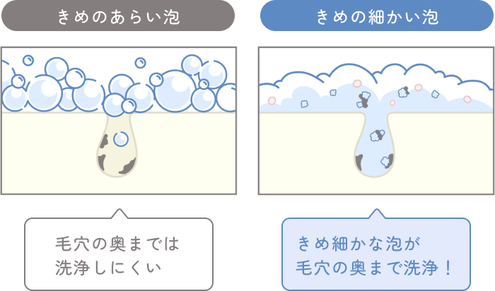 きめ細やかな泡が毛穴汚れや余分な皮脂を浮かせる