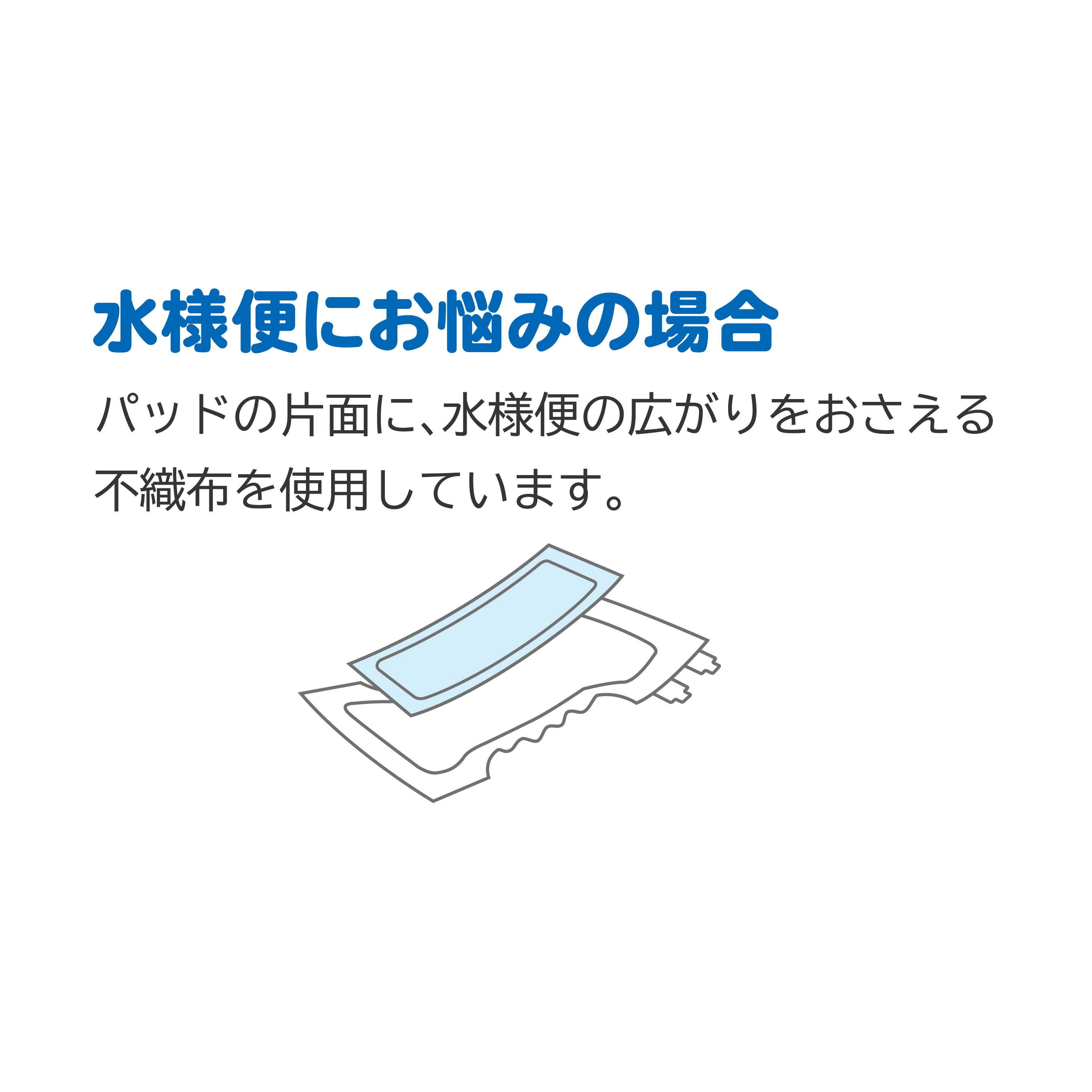 便のカスをこし、大量の水分を下の吸収体に取り込みます。