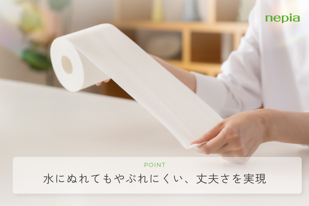 水にぬれてもやぶれにくい、丈夫さを実現