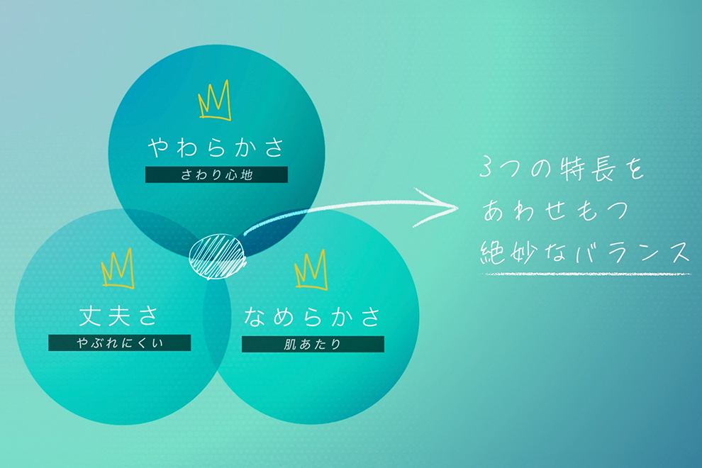 「やわらかさ」「丈夫さ」「なめらかさ」それぞれの特長をあわせ持つ絶妙な