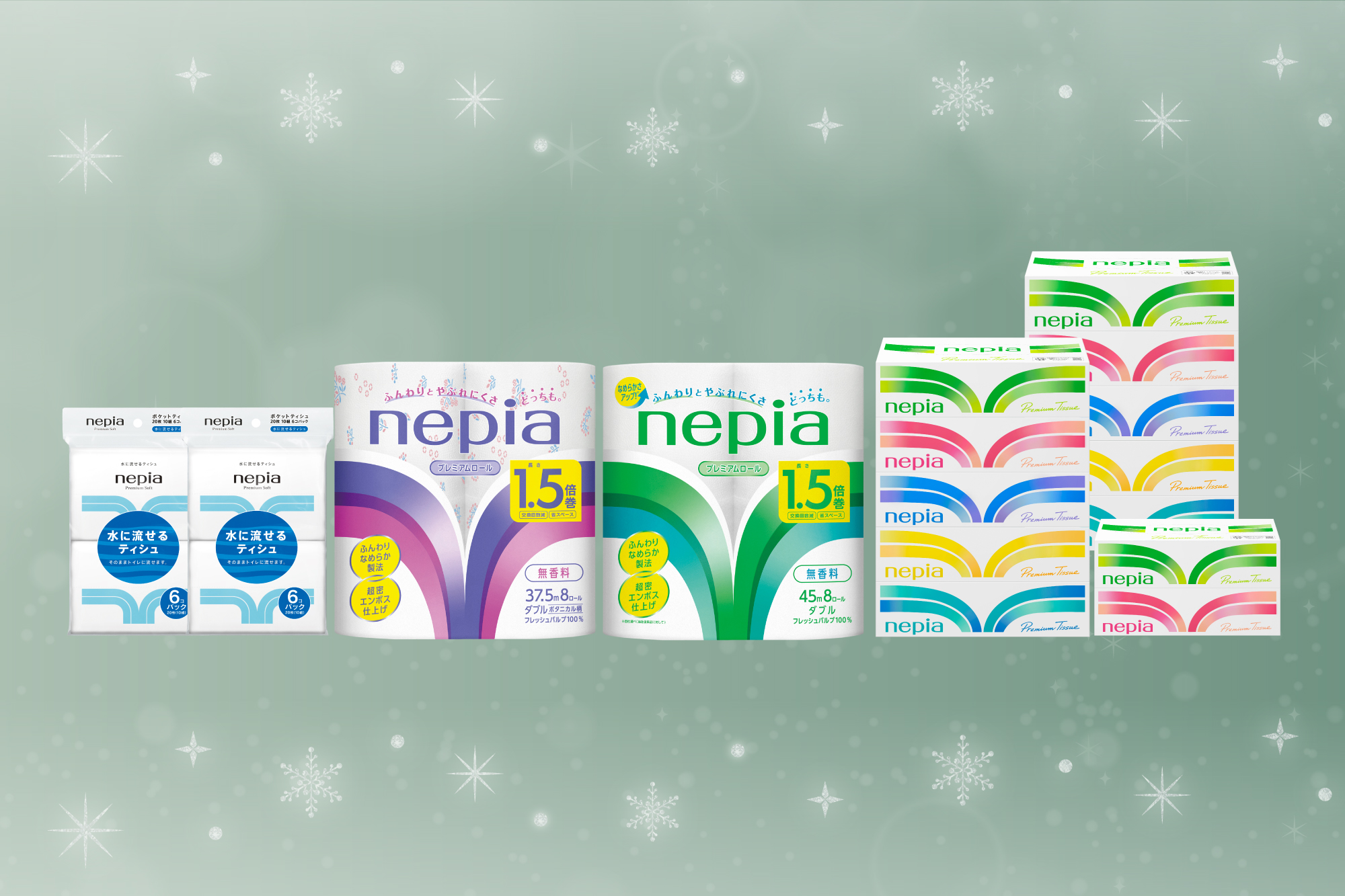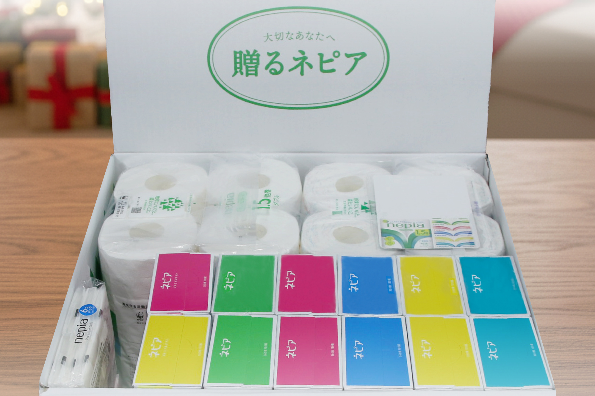 『贈るネピア』は、大切な人に贈りたくなる一品として、「ネピア ティシュ」「ネピア トイレットロール」(旧:ネピア プレミアムソフトシリーズ)を詰め合わせた数量限定のギフトセットです。