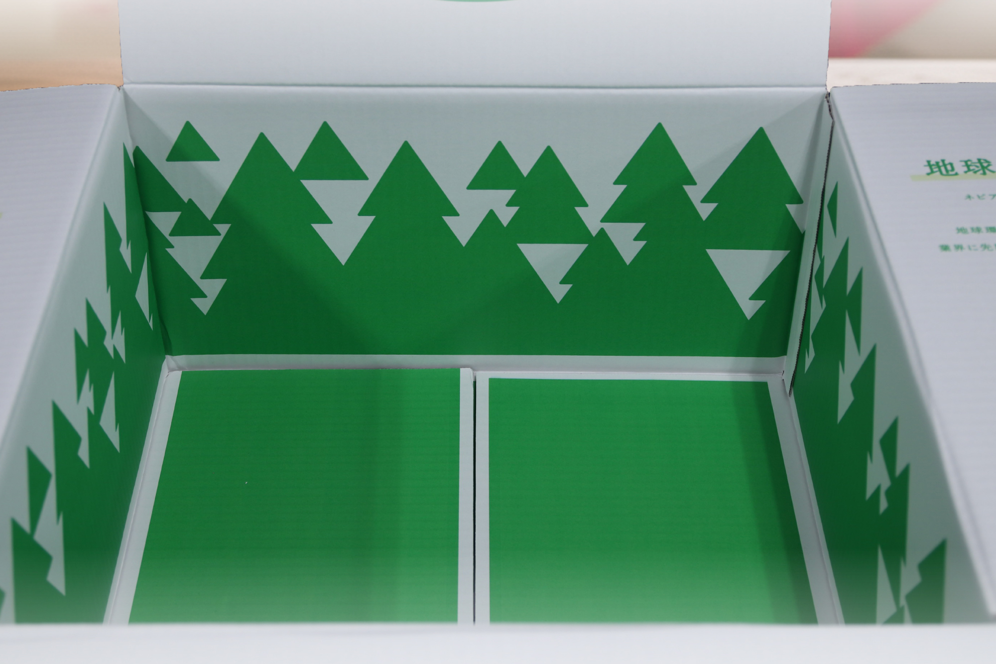 ネピアの環境マークに使用されている森のイラストを箱の中にもあしらいました。