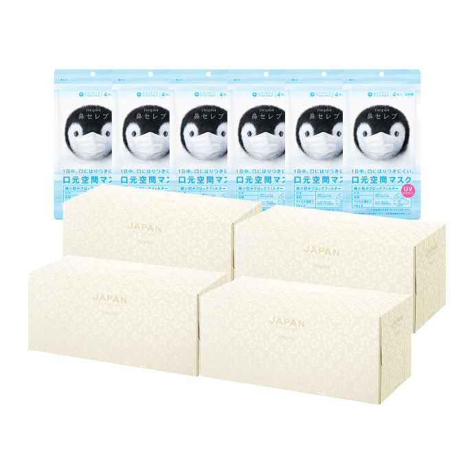 ・ネピアJAPANpuremiumティシュ440枚(220組)4個・鼻セレブマスク(フツウ)4マイ6個