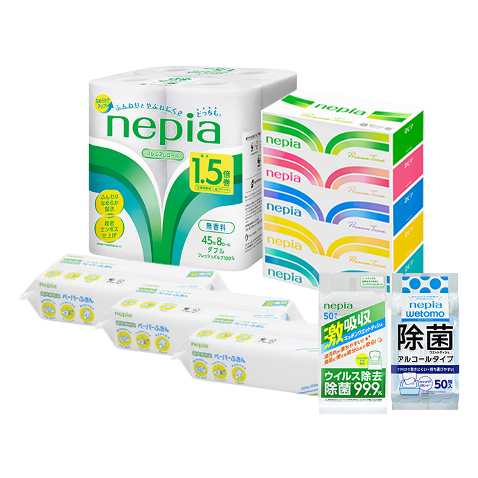 "ふんわり"、"なめらか"、"やわらか"仕上げで、もっとやさしい使い心地のネピアのロングセラー商品「ネピア プレミアムソフトティシュ」です。「鼻もかむけど手や口もふく」「品質にもこだわりたい」方におすすめです。