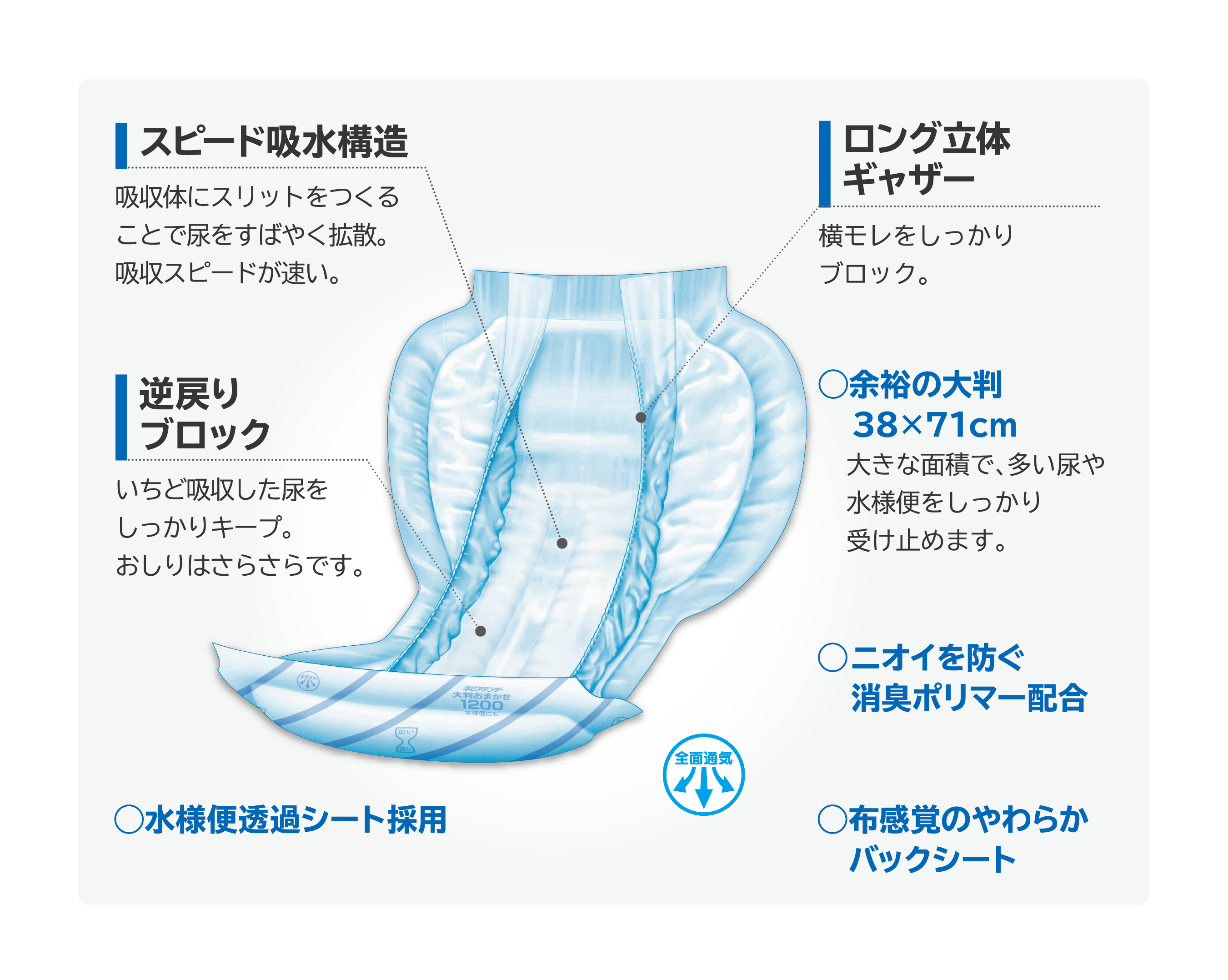 ・水様便透過シート採用
